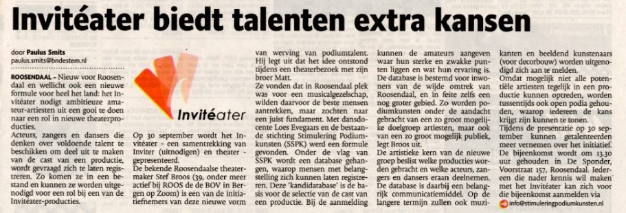 Invitéater en Stichting Stimulering Podiumkunsten zijn vaak in het nieuws geweest. Hieronder een greep uit de artikelen.