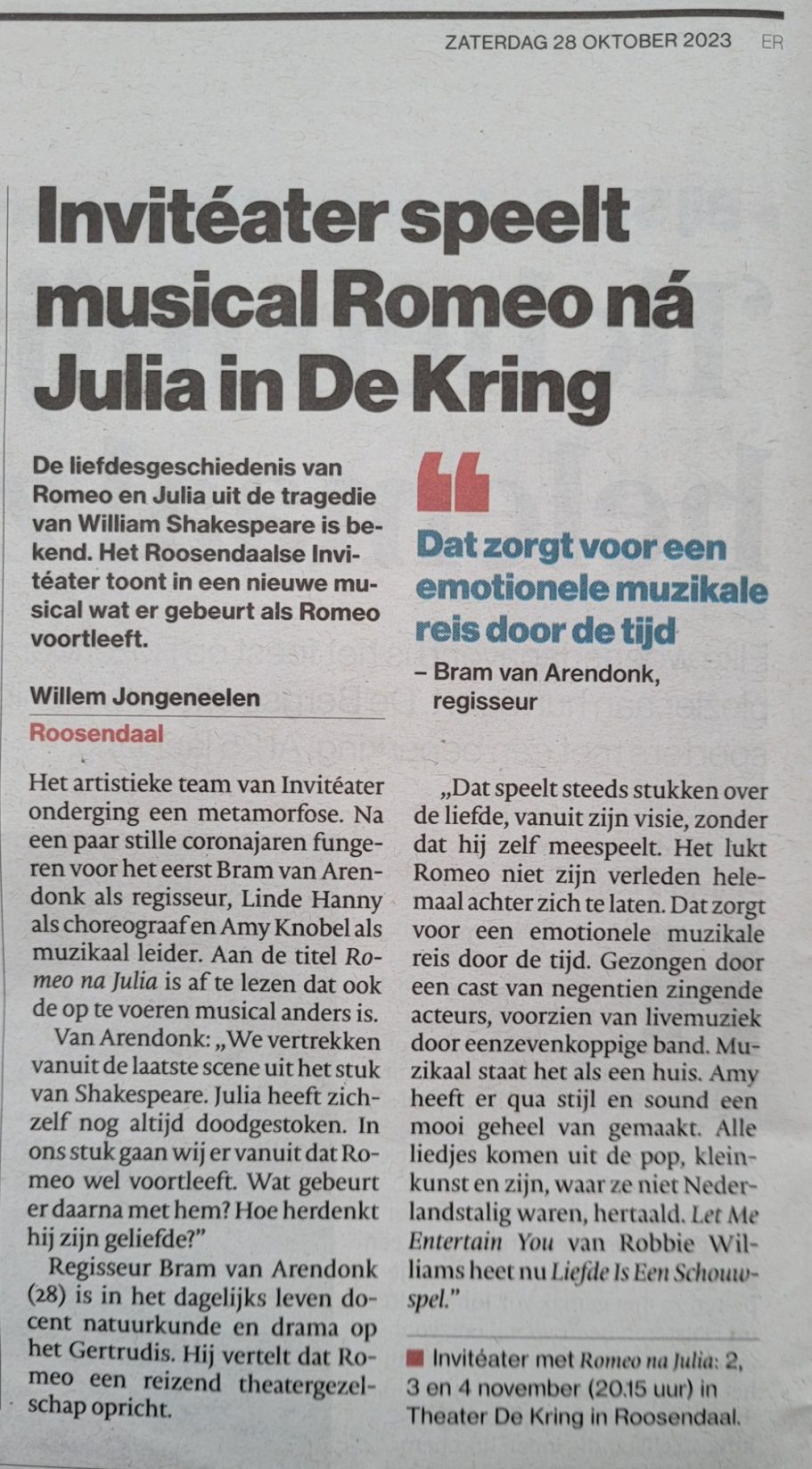 Invitéater winnaar Roosendaalse Cultuurprijs 2023